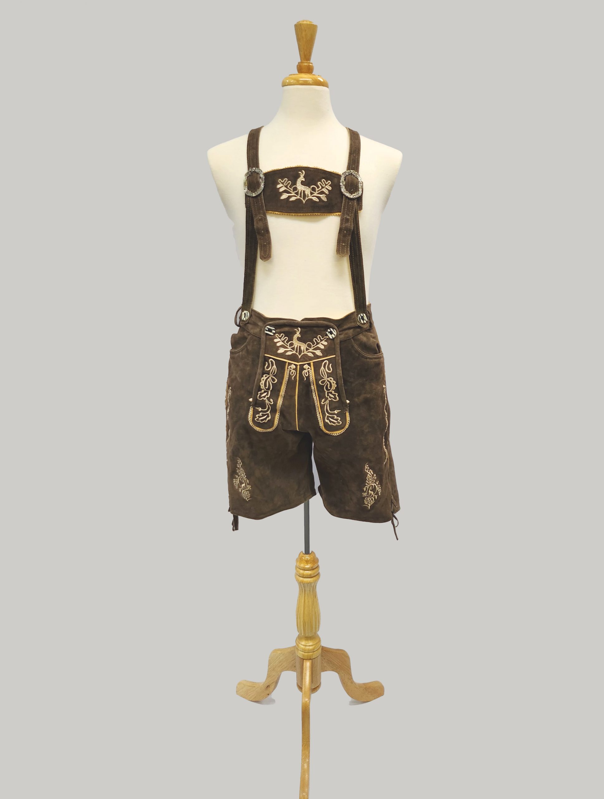 Men’s Genuine leather lederhosen $65 hire plus $120 refundable bond. Imitation Suede combinations $45 – $55 hire plus $60 refundable bond.